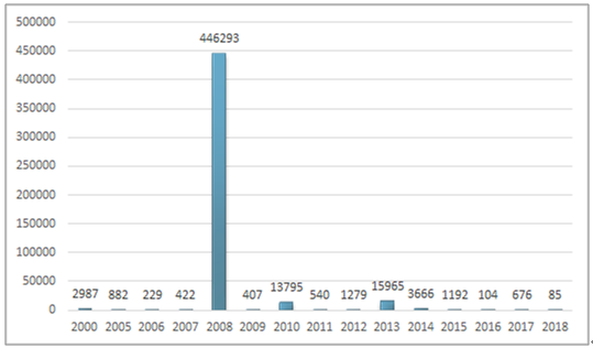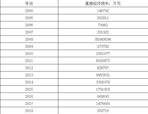2000年~2018年地震災(zāi)害造成的直接經(jīng)濟(jì)損失