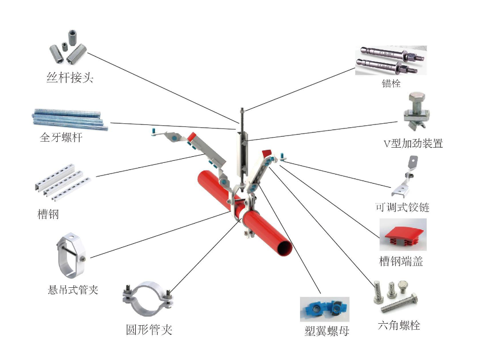 抗震支架是為保障建筑在發(fā)生地震時,保證地震時結(jié)構(gòu)不發(fā)生整體崩潰,盡量減少因地震引起的建筑結(jié)構(gòu)次生災(zāi)害對人員傷亡和經(jīng)濟損失。很多做消防施工的朋友,經(jīng)常會聊起抗震支架有沒有什么品牌,哪家廠商生產(chǎn)的抗震支架比較好等問題,這里就這些問題做一個闡述。 抗震支架適用于以地震力為主要荷載,建筑抗震設(shè)防烈度為6度-9度的建筑機電設(shè)備抗震支撐設(shè)施??拐鹬Ъ苡慑^固體、加固吊桿、抗震連接構(gòu)件及抗震斜撐組成。支吊架金屬部件可由碳鋼或不銹鋼制作,緊固件的性能等級應(yīng)符GB/T 3098.1,GB/T 3098.2,GB/T 3098.6和GB/T 3098.15的規(guī)定、墊圈的性能應(yīng)符合GB/T 93.GB/T 95的規(guī)定、全螺紋吊桿的性能應(yīng)符合GB/T 15389的規(guī)定,其它構(gòu)件獨有相關(guān)的標(biāo)準(zhǔn)統(tǒng)一規(guī)定。