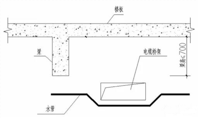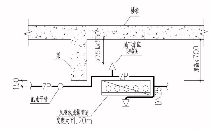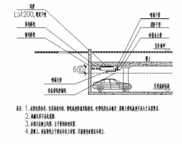 地下車庫(梁板結(jié)構(gòu))設(shè)備管線綜合示意圖