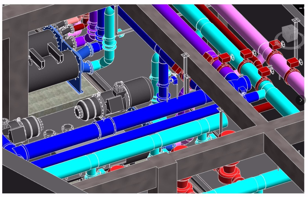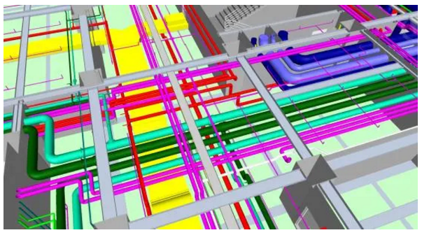 1、按詳圖建模型。機房區(qū)域設(shè)計方會提供詳圖,詳圖中會提供管線的路由,主干管的具體標(biāo)高,以及設(shè)備的編號,閥門、儀表等的具體位置。我們首先按照設(shè)計方提供的詳圖建模,按需進行深化設(shè)計。另外在添加設(shè)備時需要與廠家溝通,了解設(shè)備的尺寸,接口處的具體標(biāo)高和具體位置。 2、注意機組接口位置。接機組的管線需要考慮閥門、儀表等需要的安裝空間。 3、避讓原則。機房中的主干管管徑較大,主干管盡量不翻越,遵循小管讓大管的基本原則,合理的利用梁窩。既節(jié)省空間,又達(dá)到造價低易安裝的效果。 4、考慮托架、吊架位置。支吊架的作用是承受管道的重量,在管線布置合理的情況下應(yīng)該考慮安裝托架、吊架承重效果比較好的具體位置,并考慮該位置是否安裝方便。 5、安裝方便原則、檢修方便原則、美觀原則。由于機房管線管徑較大,如果管線之間間距過小的的話安裝會比較困難,所以應(yīng)該在有限的空間內(nèi)盡量增加管線的間距。其次需要考慮檢修空間,排布在高位的管道也需要留出維修人員的維修操作空間,一般考慮至少300X300mm的維修空間。最后需要考慮美觀原則,管線成排布置,管線之間的間距相同,上下排管線有層次感。