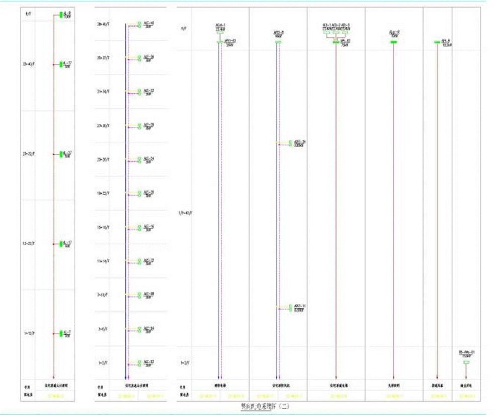4.3.2豎向配電系統(tǒng)圖 豎向配電系統(tǒng)圖是直觀(guān)的反應(yīng)配電系統(tǒng)的豎向關(guān)系,工作回路等。