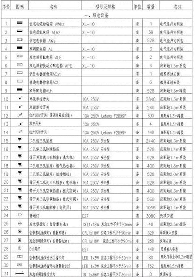 還有種情況就是平面圖和系統(tǒng)圖中都沒(méi)有坡度的標(biāo)注,但是說(shuō)明當(dāng)中的上文文字?jǐn)⑹鰧?duì)排水管道德坡度做出了規(guī)定和要求的。那么就應(yīng)帶按照設(shè)計(jì)說(shuō)明的坡度來(lái)執(zhí)行。 5、給水排水工程的識(shí)讀內(nèi)容與技巧 5.1識(shí)圖方法和步驟 閱讀建筑給水排水工程圖紙時(shí),一般按水的流向閱讀。 給水工程圖識(shí)圖順序: 引入管—干管—立管—橫管—支管—放水龍頭 排水工程圖識(shí)圖順序: 衛(wèi)生器具—排水支管—排水橫管—排水立管—排水干管—排出管 看圖時(shí)從粗到細(xì),從大到小,先看基本圖例和說(shuō)明,再看平面圖、系統(tǒng)圖和詳圖。 5.2給水排水工程平面圖。 識(shí)讀時(shí)由底層開(kāi)始逐層閱讀各層平面圖,由平面圖獲得以下信息: 5.2.1)給水系統(tǒng)進(jìn)戶(hù)管和污廢水排出管的平面位置,走向,系統(tǒng)編號(hào)。 5.2.2)給水排水干管、立管、支管的平面位置尺寸,走向和管徑尺寸以及立管編號(hào)。建筑內(nèi)部給水排水管道的布置一般是:下行上給方式的水平配水干管,敷設(shè)在底層或地下室天花板下;上行下給方式的水平配水干管敷設(shè)在頂層天花板或吊頂之內(nèi),在高層建筑內(nèi)也可設(shè)在技術(shù)夾層內(nèi);給水排水立管通常沿墻、柱敷設(shè);在高層建筑內(nèi),給水排水管道敷設(shè)在管道井內(nèi);排水橫管應(yīng)埋于地下,或在樓板下吊設(shè)等。 5.2.3)衛(wèi)生器具和用水設(shè)備的平面位置、型號(hào)規(guī)格和數(shù)量; 5.2.4)升壓設(shè)備(水泵、水箱)的平面位置、型號(hào)規(guī)格和數(shù)量等; 5.2.5)消防給水管道、消火栓的平面位置、型號(hào)、規(guī)格;水帶材質(zhì)、水槍的型號(hào)與口徑、消防箱的型號(hào)、明裝或暗裝、單門(mén)或雙門(mén)等。 5.3給水排水系統(tǒng)圖 識(shí)讀給水排水系統(tǒng)圖時(shí),先看給水排水管道進(jìn)出口編號(hào),并對(duì)照平面圖逐個(gè)管道系統(tǒng)圖進(jìn)行識(shí)讀。 1)給水系統(tǒng)圖:給水方式、地下水池和屋頂水箱或氣壓給水裝置的設(shè)置情況、管道的具體走向、干管的敷設(shè)方式、管徑尺寸及變化情況、閥門(mén)和設(shè)備以及引入管和各支管的標(biāo)高。 2)排水系統(tǒng)圖:排水管道的具體走向、管徑尺寸、橫管坡度、管道各部位的標(biāo)高、存水彎的類(lèi)型、三通設(shè)備設(shè)置情況、伸縮節(jié)和防火圈的設(shè)置情況、彎頭及三通的選用情況。 5.4詳圖 建筑給水排水工程詳圖常有:水表、管道節(jié)點(diǎn)、衛(wèi)生設(shè)備、排水設(shè)備、室內(nèi)消火栓等。主要識(shí)讀內(nèi)容為:了解具體構(gòu)造尺寸、材料名稱(chēng)和數(shù)量。 電氣工程 建筑電氣工程的主要功能: 1、輸送、分配、應(yīng)用電能、傳遞信息; 2、電能應(yīng)用主要是交流電(工頻強(qiáng)電); 3、信息傳遞主要是高頻弱電或直流電。 建筑電氣工程圖例: 圖例是用表格形式列出圖紙中使用的圖形符號(hào)或文字符號(hào)的含義,以使讀圖者讀懂圖紙。除統(tǒng)一圖例外專(zhuān)業(yè)圖例各有不同表示,讀圖時(shí)應(yīng)注意圖例及說(shuō)明。
