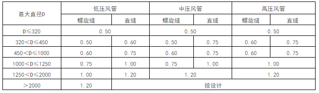 五、角鐵風(fēng)管法蘭的制作: 1、角鐵風(fēng)管角鋼的選用: ![]() 2、角鐵法蘭的制作規(guī)范: 1)中低壓風(fēng)管角鋼法蘭螺栓孔距≤150,高壓≤100。 2)角鋼法蘭的連接螺栓和鉚釘?shù)囊?guī)格及間距應(yīng)符合上表的規(guī)定。法蘭的焊縫應(yīng)熔合良好、飽滿,不得有夾渣和孔洞;法蘭四角處應(yīng)設(shè)螺栓孔, 同一批同規(guī)格的法蘭應(yīng)具有互換性。 3)壁厚小于或等于1.2mm的風(fēng)管套入角鋼法蘭框后,應(yīng)將風(fēng)管端面翻邊,并用鉚釘鉚接。風(fēng)管的翻邊應(yīng)平整、緊貼法蘭、寬度均勻,翻邊高度不應(yīng)小于6 mm;咬縫及四角處應(yīng)無開裂與孔洞;鉚接應(yīng)牢固,無脫鉚和漏鉚。 4)角鐵法蘭平面度的允許偏差為2mm,法蘭鉚接時與鍍鋅板連接縫隙應(yīng)在2mm以內(nèi)(暫定)。 矩形風(fēng)管角鋼法蘭材料規(guī)格及螺栓和鉚釘孔距(mm): ![]() 風(fēng)管及法蘭制作的允許偏差(mm): ![]() 六、圓形風(fēng)管制作應(yīng)符合下列規(guī)定: 1、圓形風(fēng)管分直縫和螺旋縫兩種形式,風(fēng)管板(帶)材厚度不應(yīng)小于表6-1的規(guī)定。 表6-1 圓形風(fēng)管板材厚度(mm) ![]() 2、圓形風(fēng)管采用法蘭連接時,材料規(guī)格應(yīng)符合表6-2的規(guī)定。低壓和中壓系統(tǒng)風(fēng)管法蘭的螺栓及鉚釘?shù)拈g距應(yīng)小于或等于150mm;高壓系統(tǒng)風(fēng)管則應(yīng)小于或等于 100mm。 表6-2 圓形風(fēng)管法蘭及螺栓規(guī)格(mm) ![]() 七、風(fēng)管部件的制作: ![]() 八、關(guān)于銷售下單表內(nèi)容的解釋:(網(wǎng)摘,供參考) 1、角鐵風(fēng)管翻邊:角鐵風(fēng)管法蘭口的翻邊,翻邊量不小于6mm; 2、開洞上咀子:聯(lián)合角咬口結(jié)構(gòu),先開洞,翻邊上咀子; 3、只開洞,現(xiàn)場上咀子:首先跟客戶溝通是聯(lián)合角咬口上咀子還是拉鉚上咀子,聯(lián)合角咬口形式需要將咬口單邊翻好;拉鉚形式只需要開洞,不翻邊; 4、不允許橫向接縫:銷售有明確要求的情況下,接板都采用縱向接縫,允許裁剪共板法蘭。 九、風(fēng)管質(zhì)量檢驗規(guī)范: 1、成品風(fēng)管檢驗規(guī)范: (1)風(fēng)管與配件的咬口縫應(yīng)緊密、寬度應(yīng)一致;折彎應(yīng)平直,異形圓弧應(yīng)均勻;兩端面平行。風(fēng)管無明顯扭曲與翹角;表面應(yīng)平整,凹凸不大于10mm。 (2)風(fēng)管外內(nèi)徑或外邊長的允許偏差:當(dāng)小于或等于300mm時,為2mm;當(dāng)大于300mm時,為3mm。管口平面度的允許偏差為2mm,矩形風(fēng)管兩條對角線長度之差不應(yīng)大于3mm;圓形法蘭任意正交兩直徑之差不應(yīng)大于2mm。 (3)風(fēng)管密封處要嚴(yán)密,不允許有漏打膠的現(xiàn)象發(fā)生。 (4)風(fēng)管現(xiàn)場拼合時,地面應(yīng)平整并鋪設(shè)大芯板,防止鍍鋅層損壞;風(fēng)管堆放應(yīng)平整,避免磕碰。 (5)風(fēng)管外觀無嚴(yán)重劃痕,表面無污漬(如密封膠殘跡等)。 (6)同口徑風(fēng)管法蘭角孔中心距離偏差應(yīng)在3mm以內(nèi)。 角鐵法蘭風(fēng)管檢驗規(guī)范 (1)角鐵法蘭下料要求準(zhǔn)確,螺栓孔距離要均勻,鉚釘孔位置合理,無特殊要求應(yīng)間距150mm以內(nèi)。 (2)角鐵法蘭焊接應(yīng)平整,尺寸要合理,對角線誤差應(yīng)在3mm以內(nèi),對焊處應(yīng)當(dāng)無明顯落差,焊縫處應(yīng)當(dāng)清理藥皮,防止噴漆后脫落,無燒透,漏焊等現(xiàn)象。 (3)角鐵法蘭批量生產(chǎn)時,部分焊接完成后應(yīng)抽檢,檢查螺栓孔是否對齊,及時進(jìn)行調(diào)整,以保證螺栓孔位置一致。 (4)角鐵法蘭噴漆應(yīng)當(dāng)均勻密布,無漏噴現(xiàn)象,搬運過程中盡量減少防銹漆的磨損和掉落。 (5)角鐵法蘭鉚接時側(cè)面應(yīng)當(dāng)與鍍鋅板連接緊密,縫隙應(yīng)在2mm以內(nèi)(暫定),搬邊應(yīng)當(dāng)平整,與角鐵法蘭無縫隙,鉚接完成后風(fēng)管外觀無嚴(yán)重劃痕及污漬。 (6)要求打膠均勻。 (7)其他要求同共板法蘭風(fēng)管。 2、半成品風(fēng)管檢驗規(guī)范 (1)半成品風(fēng)管下料時,系統(tǒng)編號、生產(chǎn)指令號、板料切割號應(yīng)當(dāng)填寫清楚,并用不同顏色記號筆區(qū)分開不同厚度的板料切割號,以防止現(xiàn)場安裝時出現(xiàn)混淆,下料完成后每個厚度板料擺放要整齊,以方便生產(chǎn)人員區(qū)分和加工。 (2)半成品直管下料時要求進(jìn)行抽檢,檢查板料的尺寸、共板法蘭的平整性、聯(lián)合口的完整性,板料擺放要注意L型的折彎角度不要堆積過多,以防止折彎角度大于90°。 (3)半成品異形件軋制時也要適當(dāng)?shù)臋z查板料的尺寸、共板法蘭的平整性、聯(lián)合口的完整性,異形件堆放時應(yīng)當(dāng)有序,同一指令同一板厚的板料要適當(dāng)?shù)倪M(jìn)行打包處理,以防止搬運過程出現(xiàn)遺漏的現(xiàn)象,特別注意的是各個環(huán)節(jié)要加強(qiáng)對異形件半成品板料的管理,以防止生產(chǎn)過程中板料的遺失,從而提高客戶的滿意度。 (4)半成品異形件有需要折彎的應(yīng)當(dāng)根據(jù)其它幾片板料的形狀來進(jìn)行折彎,以滿足客戶現(xiàn)場組裝時的實用性。(避免客戶現(xiàn)場合口,出現(xiàn)菱形的風(fēng)管) (5)半成品異形件在板料接口時應(yīng)當(dāng)注意接縫的嚴(yán)密性、平整性,如有生產(chǎn)條件,應(yīng)對其它幾片進(jìn)行核實,以防止出現(xiàn)現(xiàn)場組裝法蘭口不平整