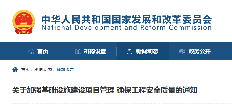 7月6日發(fā)改委官網(wǎng)發(fā)布《加強(qiáng)基礎(chǔ)設(shè)施建設(shè)項(xiàng)目管理 確保工程安全質(zhì)量的通知》