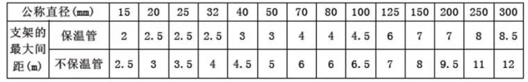 5、絲接管道連接: 1)管徑小于或等于DN100的鍍鋅鋼管可采用螺紋連接。 2)當(dāng)管徑大于DN100 時(shí),可采用卡箍、法蘭或焊接連接。給排水管道:鋼管與法蘭的焊接處應(yīng)二次鍍鋅;空調(diào)水管道:對(duì)焊縫及熱影響區(qū)的表面進(jìn)行防腐處理。 3)管道安裝后的管螺紋根部應(yīng)有2-3扣的外露螺紋,多余的麻絲應(yīng)清理干凈并對(duì)套絲扣時(shí)破壞的鍍鋅層表面及外露螺紋部分做防腐處理。 4)螺紋連接的管道,螺紋應(yīng)清潔、規(guī)整,斷絲或缺絲不大于螺紋全扣數(shù)的10%; 連接牢固;接口處根部外露螺紋為2~3 扣,無(wú)外露填料;鍍鋅管道的鍍鋅層應(yīng)注意保護(hù),對(duì)局部的破損處,應(yīng)做防腐處理。 6、管道穿過(guò)防火墻: 采用不燃燒材料將其空隙填實(shí)。穿防火墻管道的保溫材料,采用不燃燒材料。 1、管道的支、吊架安裝: (1)固定支架的位置應(yīng)正確,埋設(shè)應(yīng)平整牢固。 (2)固定支架與管道接觸應(yīng)緊密,固定應(yīng)牢靠。 2、立管管卡: 1)樓層高度小于或等于5m,每層必須安裝1個(gè)。 2)樓層高度大于5m,每層不得少于2個(gè)。 3、給排水水平管的支、吊架間距: